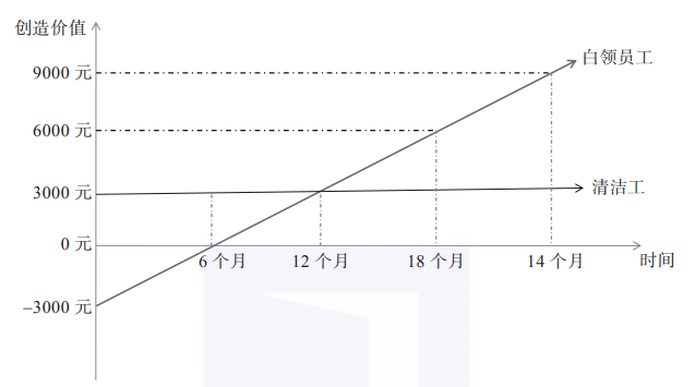 一般說來,入職半年之內,員工創造的都是負價值,入職半年至一年才能實現「盈虧平衡」,入職一年後才能真正開始創造價值(見下圖)。