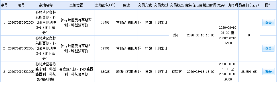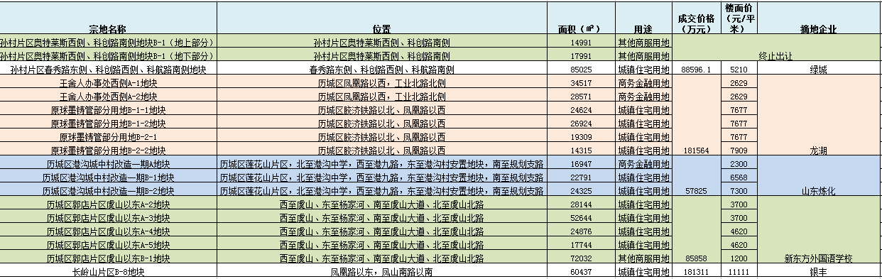 高新區孫村片區地塊被綠城和濟高控股以88596萬元底價摘得,樓面價約5210元/平;