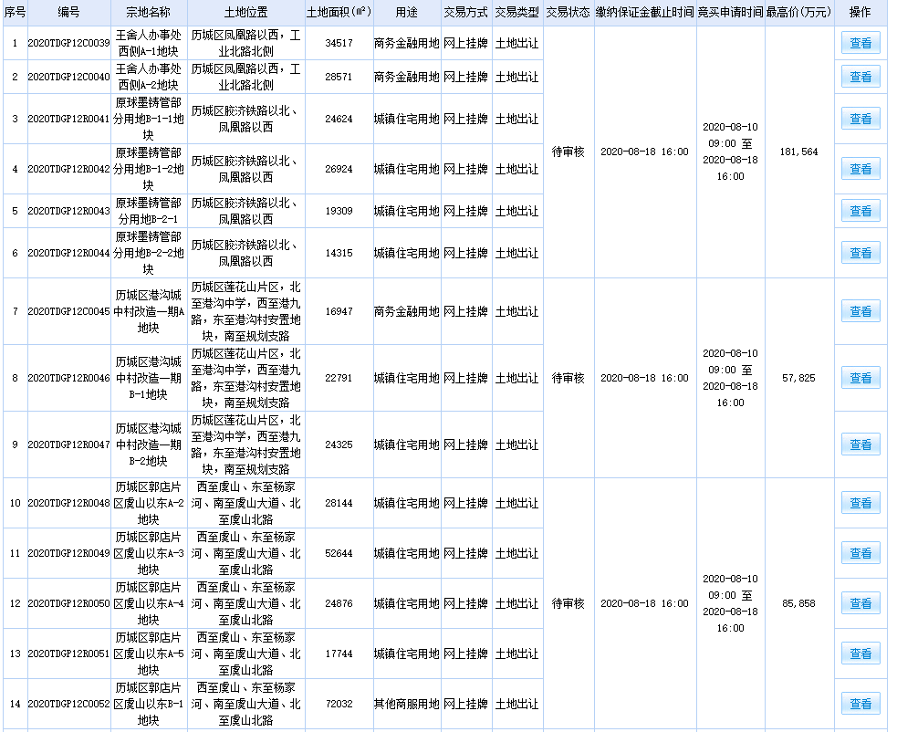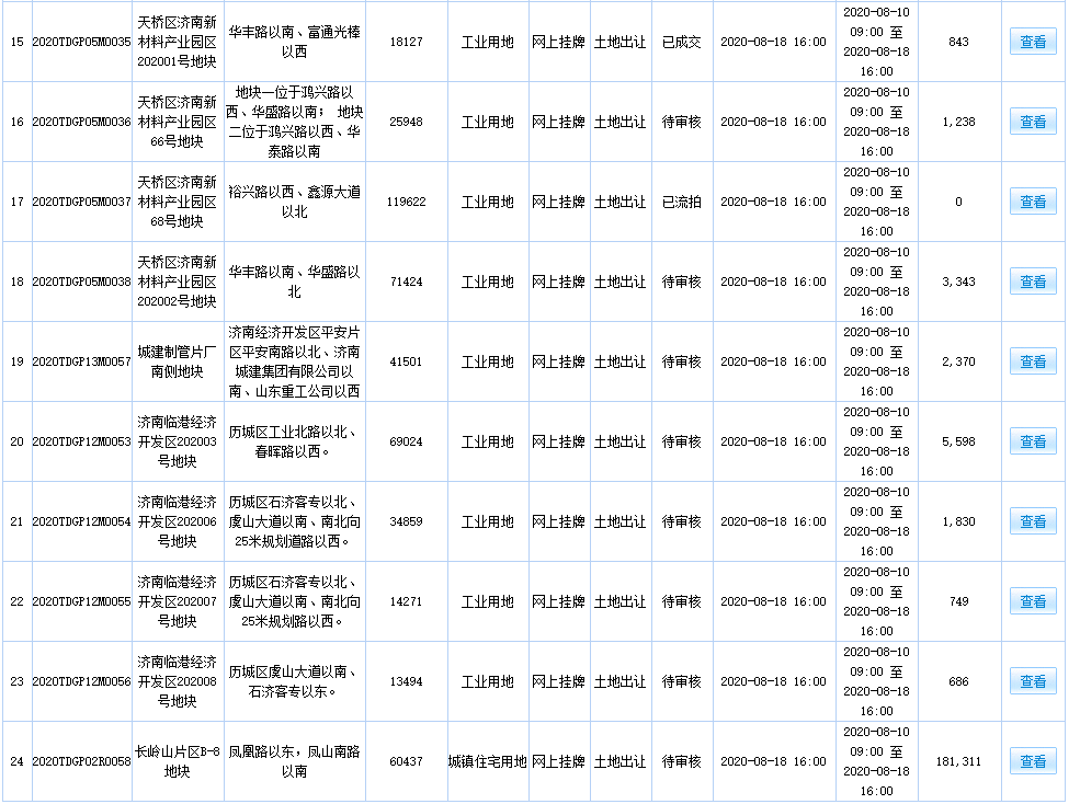 8月20日,濟南迎來了2020年度最大規模的土地拍賣。其中,孫村片區2宗商業用地終止出讓,25宗土地共1492畝進入交易環節,包含12宗住宅用地、4宗商業用地和8宗工業用地,成交總金額約611811萬元。