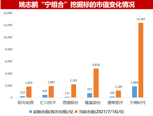 姚志鵬挖掘的「寧組合」標的,近年來企業市值均實現大幅增長,至今已成為各行業一流企業,市值規模均超千億。