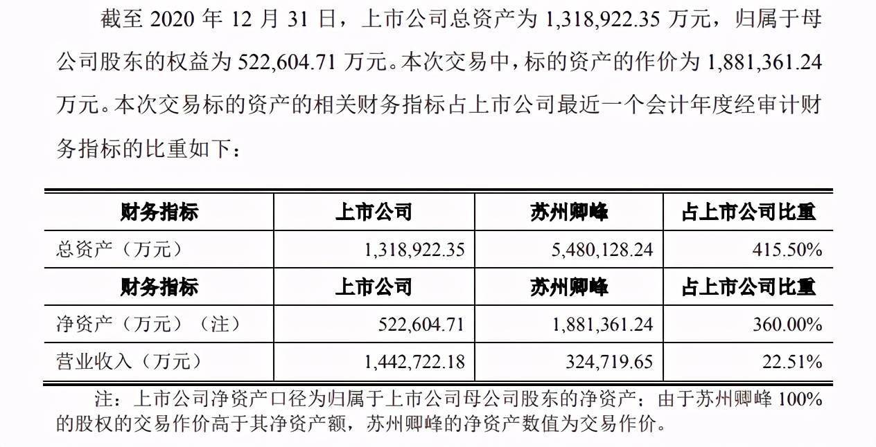 直至2020年11月份,沙鋼股份公布草案,再度對重組方案進行調整,其中擬收購標的資產為蘇州卿峰100%的股權(不包括截至評估基準日其持有的德利迅達12%的股權),而標的資產調整後的交易作價為188.14億元。