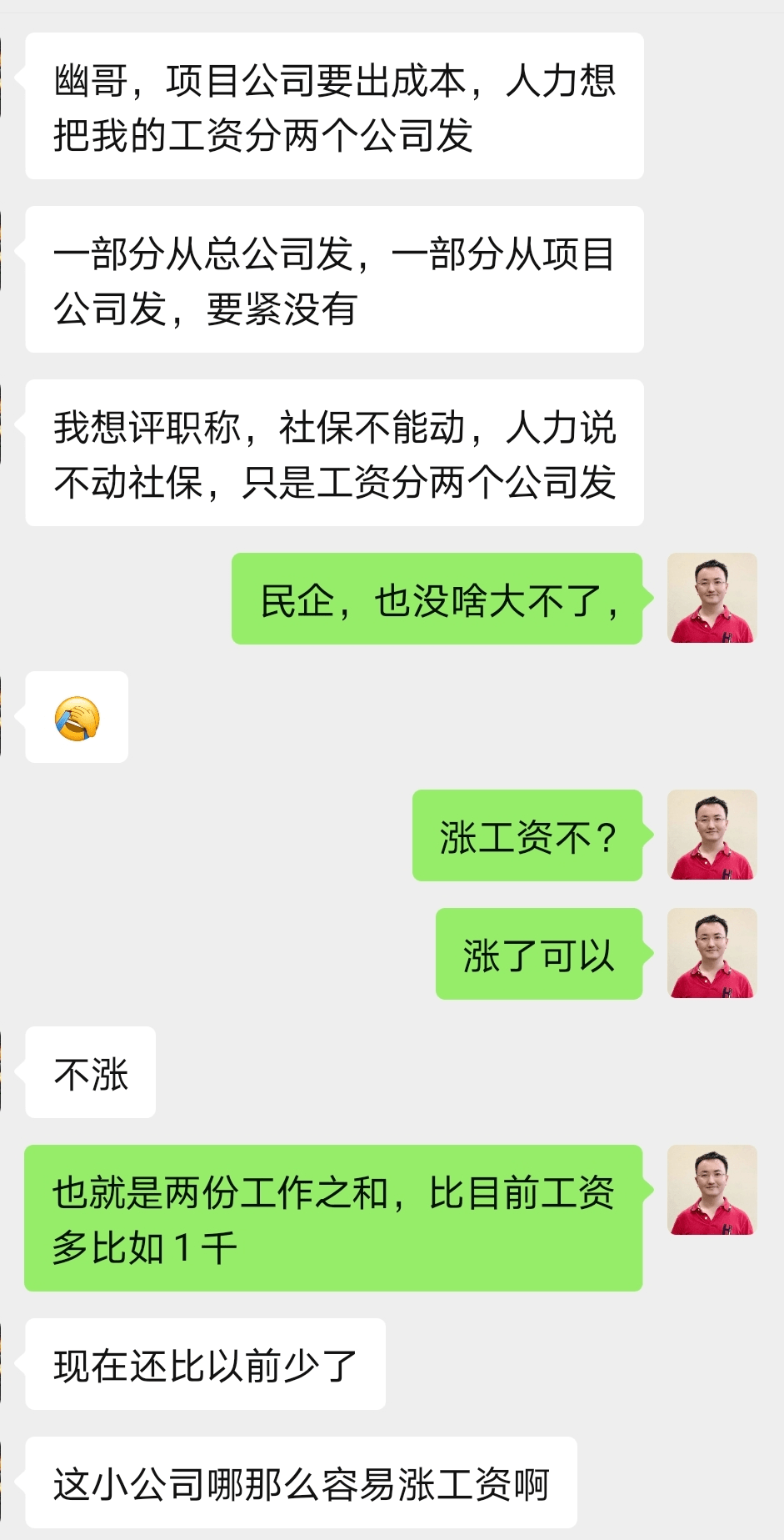簡單舉例,你看下圖我們群友小張碰到的問題。小張都入職2年了,突然人力來找他談,將他的工資分成2個公司發放。