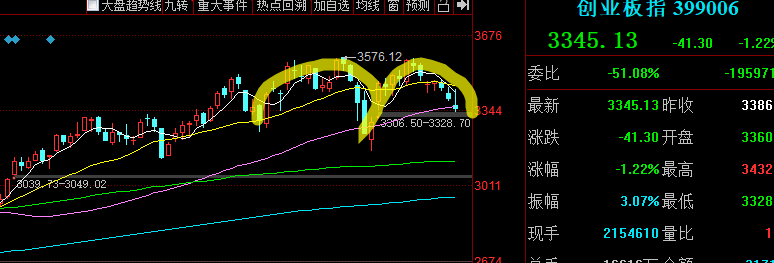 創業板指日線看到金拱門形態,屬於看跌信號。