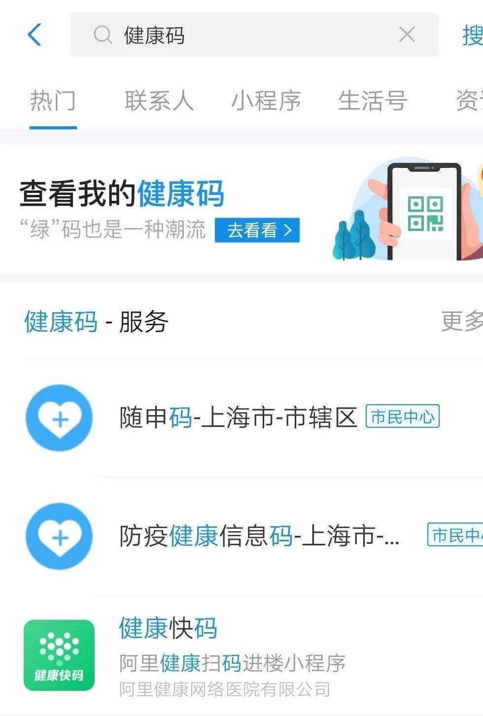 目前進景區、訂酒店,一般都需要「健康碼」,綠色健康碼才可以正常通行。支付寶中搜索「健康碼」,選擇自己所在的地區,如實填報相關信息就可以。