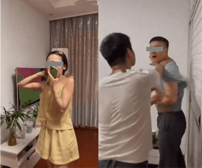 看到女子開門後,丈夫一把就拉開了大門,隨後一把將女子推到客廳里,沖進臥室發現了一名正在整理衣服的男子。丈夫沖上前去,一把就拎住了男子,可不料女子沖進來後,竟然喊著:不要誤會了,只是在一起敷個面膜而已。