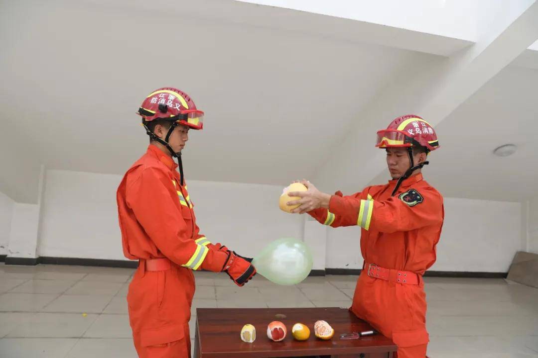 近日,消防員哥哥們針對橘子是否會引發氣球爆炸的問題,做了一次實驗。