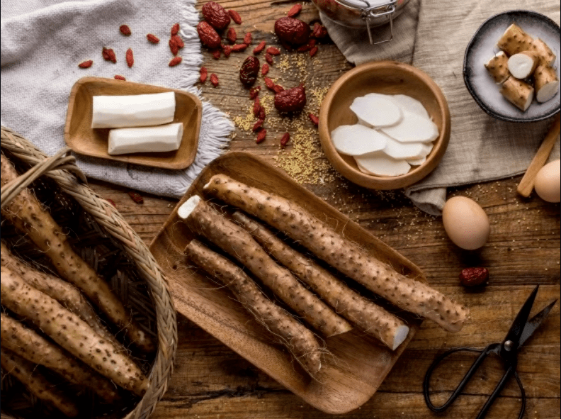 補脾養胃,生津益肺,補腎澀精。用於脾虛食少,久瀉不止,肺虛喘咳,腎虛遺精,帶下,尿頻,虛熱消渴。麩炒山藥補脾健胃。用於脾虛食少,泄瀉便溏,白帶過多。——《藥典2015版》