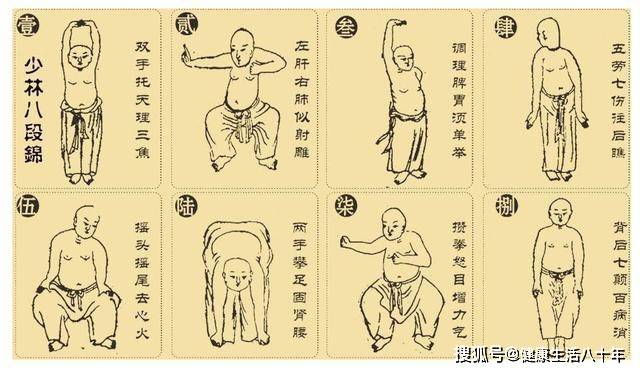 八段錦:可使軀體四肢的運動與調心、調息相結合,其動作簡單易行,效果顯著。