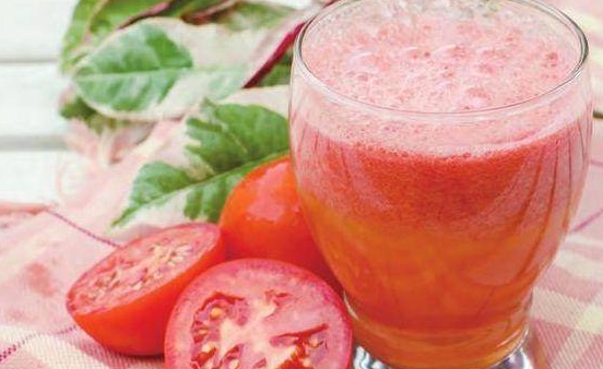 做法:將番茄洗干淨,火龍果去皮切塊,倒入適量的水,榨成果汁。