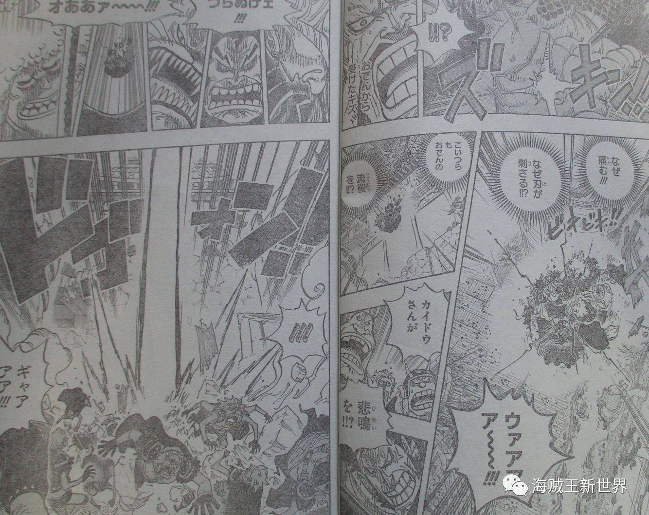 九人合體攻擊凱多身上御田留下的舊傷,凱多震驚難道他們學會了御田的「流櫻」