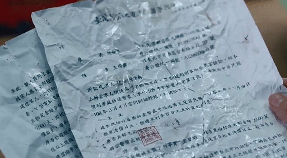 阿良的妻子將碎紙拼好後,發現這是一張法院的判決書。