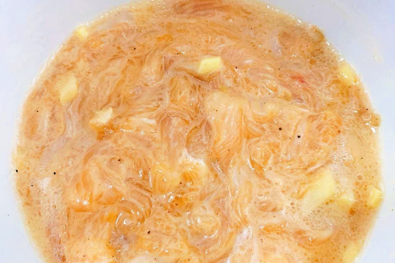 1.首先將新鮮的雞胸肉放入到清水中浸泡30分鍾,時間到後,再將雞胸肉用流水清洗2遍,接著將雞胸肉切成細絲,將雞蛋白、料酒、食鹽、白胡椒粉、生薑、生抽、蚝油放入到雞肉中,朝一方向攪拌均勻,醃制10分鍾後,將澱粉和食用油放入雞絲中,再把雞肉攪拌均勻即可備用。雞肉絲攪拌好後一定要放適量的食用油,這樣能使雞肉絲吃著更嫩!