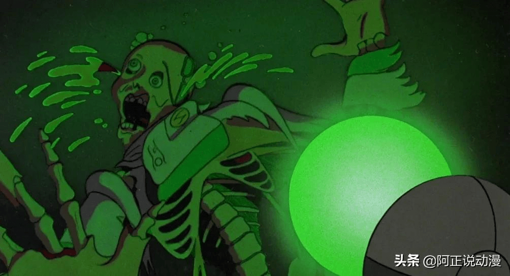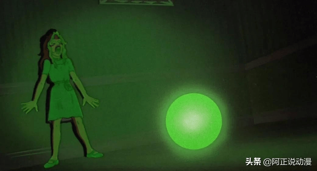 在父女倆的驚駭中,綠光瞬間將父親變成一灘綠色膿水。