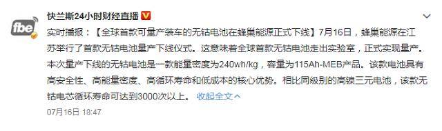 為此,多家動力電池供應商一直在嘗試去鈷化,部分有條件的車企更是親自下場。就在日前,國產車企傳來好消息,電池技術實現突破,全球首款無鈷電池問世。
