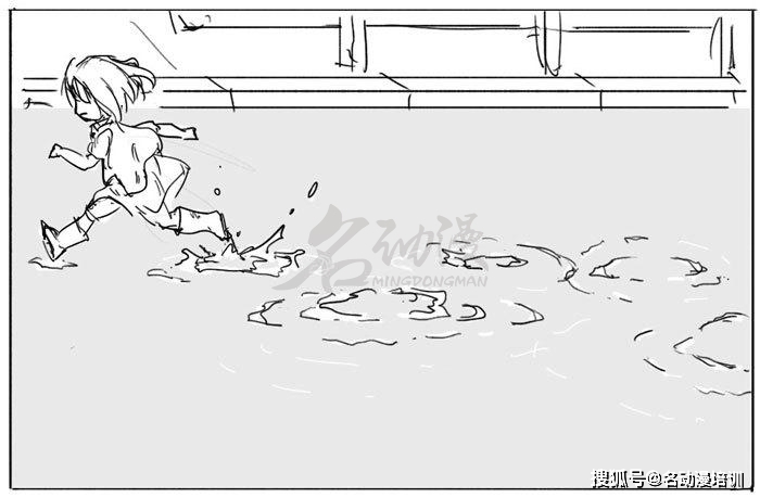 但如果我們像下圖這樣,在水花的邊緣位置加上大量細碎的小線條,銳化水花的效果,就可以讓畫面看起來更加富有沖擊力了。