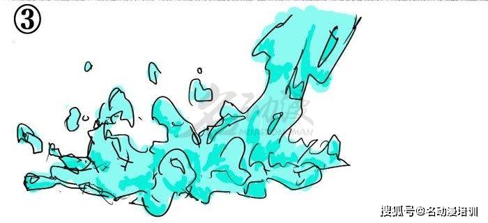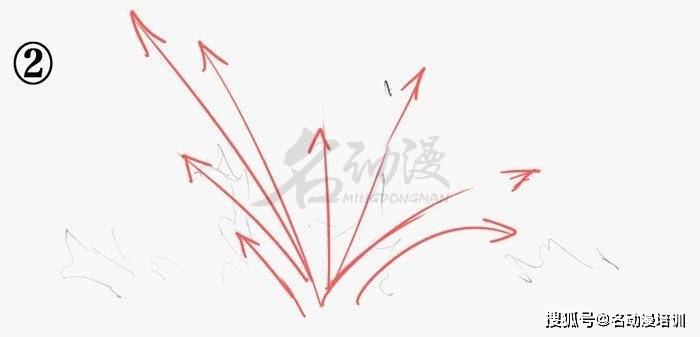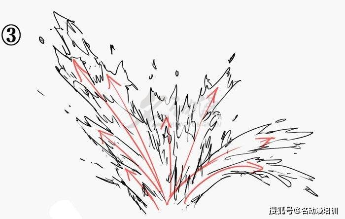 具體到水花的畫法,這里我建議大家先用箭頭畫出水的具體沖擊方向。