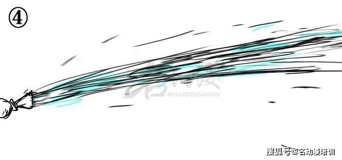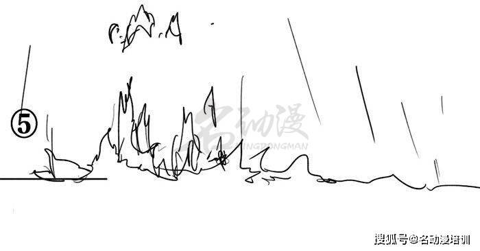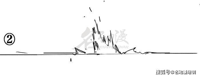 4、所以綜上所述,我們可以得到結論:當力在水面中的作用力很大,范圍也很大時,就可用一連續的短線組合表示飛濺四射的效果。