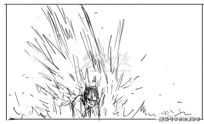 1、這是一個人物在瀑布下方「修煉」的畫面。作者在畫水花飛濺的時候,很明顯分析了水花的受力的方向,合理塑造了在重力影響下,水流沖向人體後四處飛濺的水花效果。
