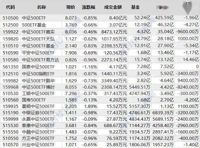 跟蹤中證500指數的20隻ETF