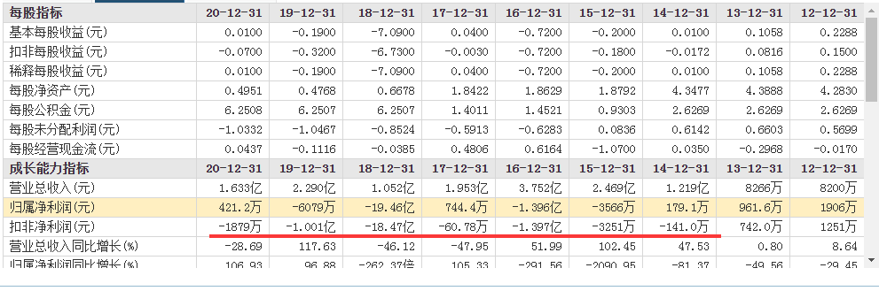 2015年、2016年公司歸母淨利潤連續2年虧損,面對退市危機的天山生物,在2017年憑借壓縮近四成管理費用,實現了「保殼」;緊接著2018年、2019年淨利潤又再次連續2年虧損,2020年又憑借處置資產、政府補助等實現扭虧。