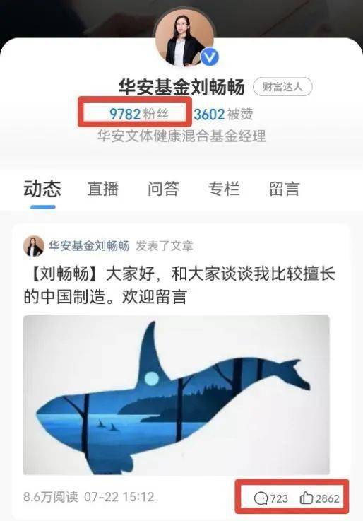 劉暢暢是今年人氣超高的新銳基金經理,她在第三方平台發表的文章也受到了熱烈的回應。