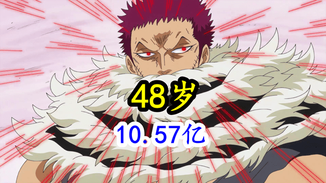 BIG MOM海賊團的三將星,卡塔庫栗最強,年齡也最大,是48歲,比燼還大一歲。而白鬍子海賊團的前三隊長,一隊隊長馬爾科現今45歲,二隊兩任隊長如果都還活著,御田就59歲,艾斯22歲。三隊隊長喬茲42歲。