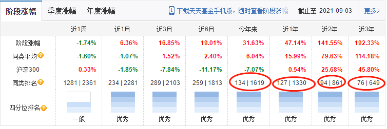 Z哥更看中的,是今年以來的排名,近1年、近2年,近3年的業績排名。