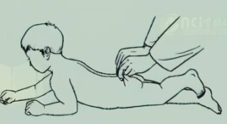 操作:兩手半握拳,兩食指抵於背脊之上,再以兩手拇指伸向食指前方,合力將患兒脊背皮膚捏起,同時向上提起。而後食指向前,拇指向後退,做翻卷動作。兩手同時均勻向前推動。邊搓邊推的同時醫者雙手拇指將提起的皮膚向食指方向捻動,自尾骨端長強穴起,捍、提、搓、推、捻連續不斷一直到大椎穴。放鬆捏起的皮膚,恢復原狀。如此反復5~8次,第3次開始對脾俞、大腸俞提拿。完成後按揉背部半分鍾。操作強度:2 歲及以下者5遍(2分鍾);2歲以上8遍(3分鍾)。