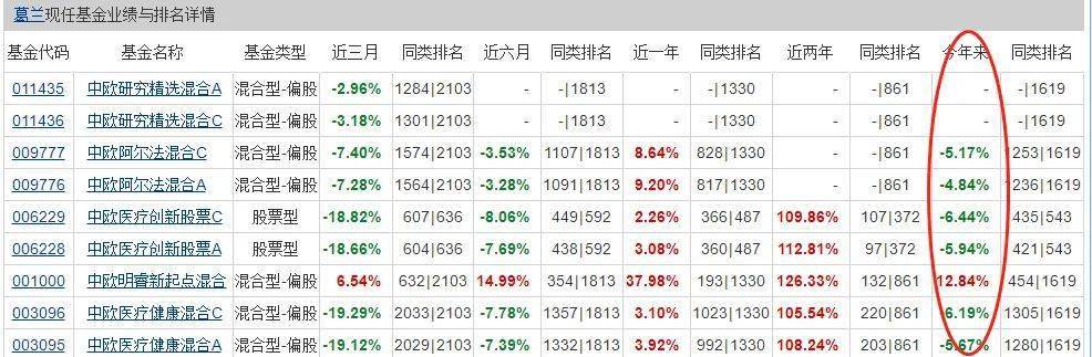 而中歐的醫藥「女王」葛蘭,由於今年醫藥股大幅調整,她的產品也出現大面積虧損。