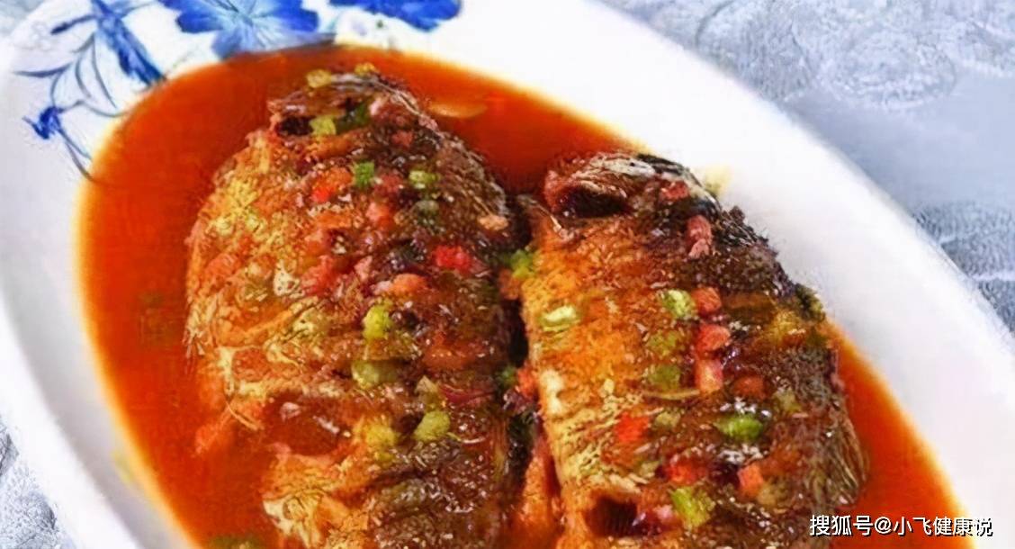 2、鍋加油,燒熱,鯽魚肚子裡加肉餡,裹上蛋液,下鍋炸至兩面金黃,盛出備用。