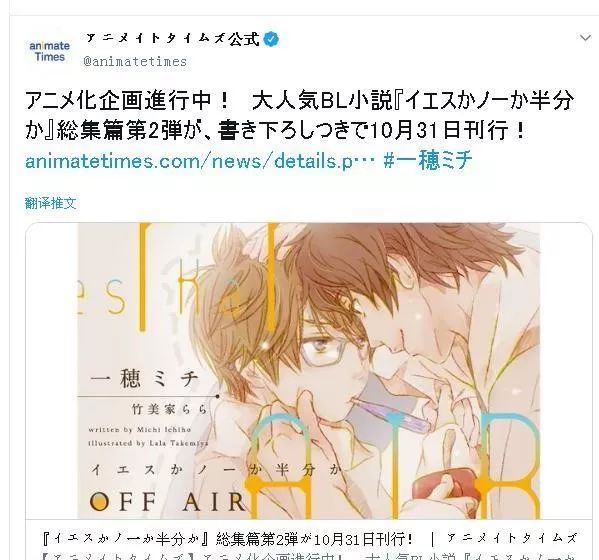 在10月31日發售的《愛情可以分割嗎?》系列的總集篇第二彈《OFF AIR2愛情可以分割嗎?》的書腰上,宣布了同系列的動畫化企劃正在進行中的消息。