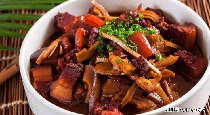 2.將筍干用水泡好,切成粗絲狀,瘦肉與肥肉分開切好,將肥肉煸炒出油,瘦肉用大喜大烤肉醬醃制一會