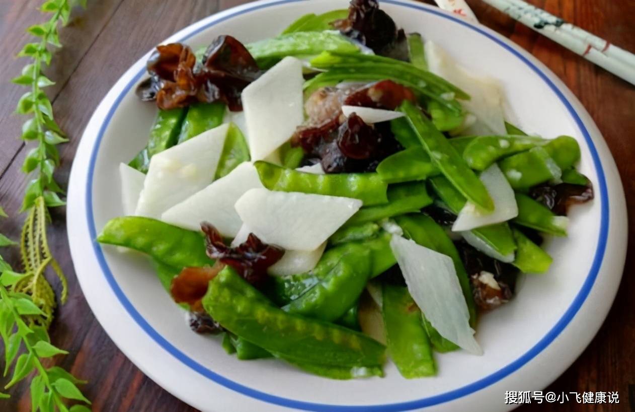 材料:荷蘭豆250克、山藥250克、木耳適量、油鹽適量、大蒜2瓣、雞精1茶匙、水澱粉適量