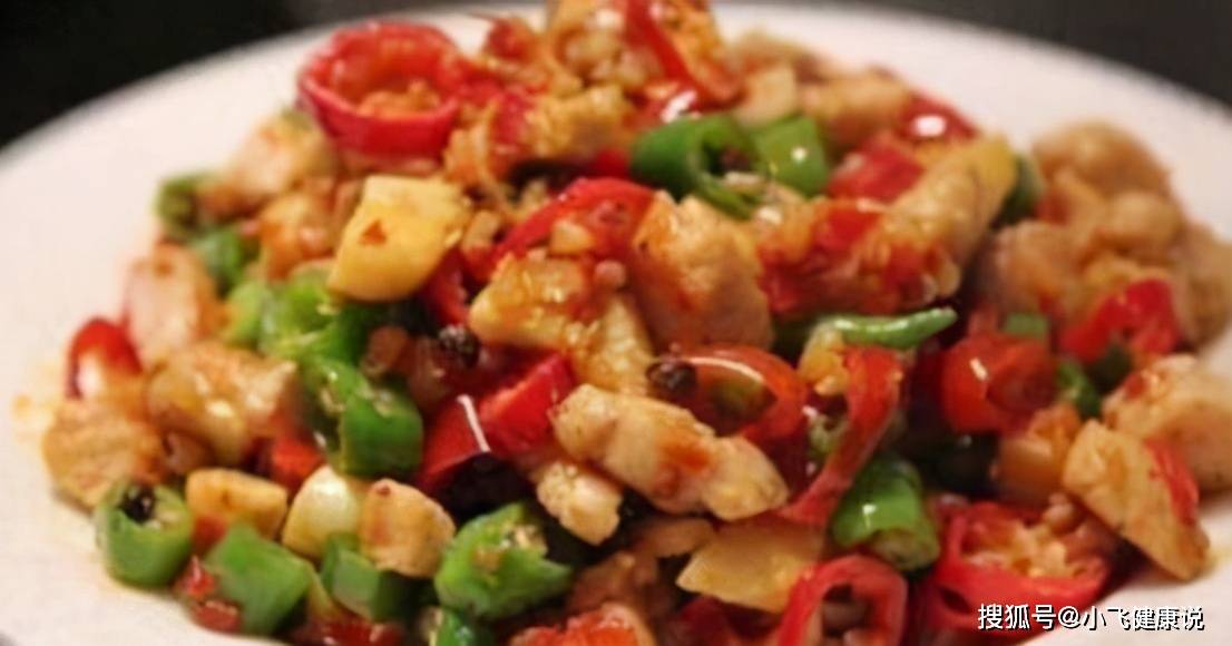 2、鍋內下油,要多些,將醃好的雞丁入內炸,至雞丁皮焦後盛起來;辣子雞鍋內留底油,淨姜蒜辣椒花椒入內爆香,隨後加入雞丁;