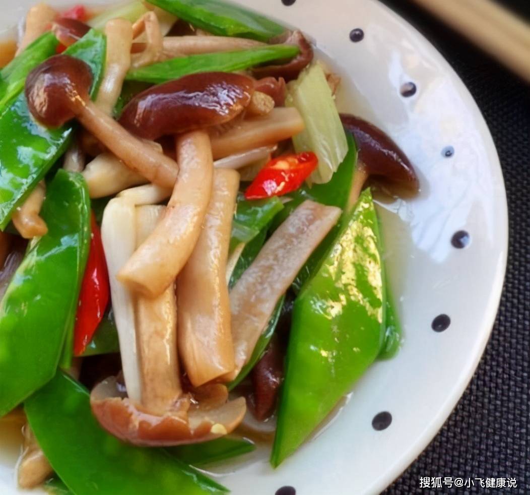 材料:茶樹菇200克、荷蘭豆150克、香芹20克、油1湯匙、鹽1/2茶匙、糖1/2茶匙、生抽1茶匙、蚝油1茶匙、生粉1茶匙、姜5片、蒜3瓣、紅辣椒3根