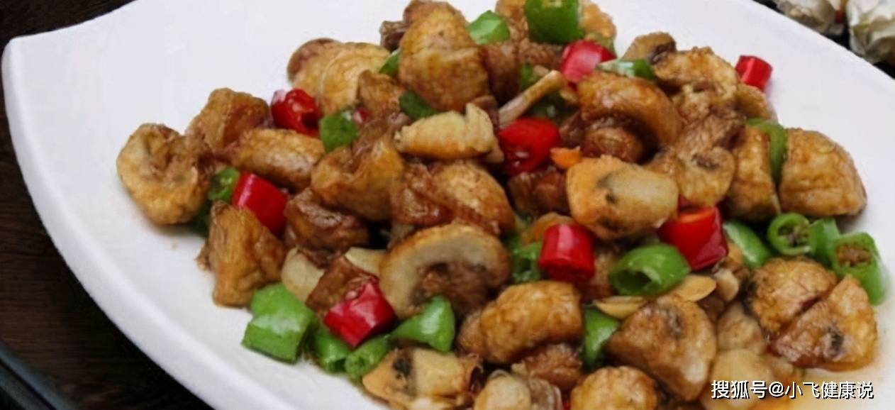 4、下炸好的扇貝和青紅椒節,加鹽、味精、雞精、香油和花椒油調味,撒炸花生即可。
