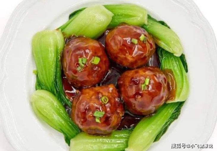 (吃的時候把獅子頭撈出來放盤中,油菜圍邊。盛少許湯汁在炒鍋中勾一個薄芡,澆在上面便可)。