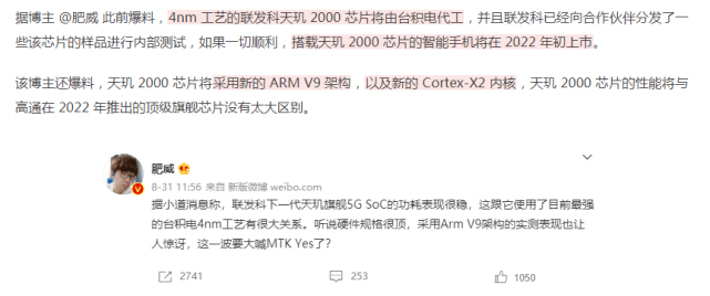 另外根據IT之家援引數碼博主消息可知,搭載聯發科天璣2000晶片的智慧型手機,會在明年初上市。該款晶片採用ARM全新的V9架構,用上了Cortex-X2 內核,性能和高通明年推出的頂級旗艦晶片沒有太大區別。