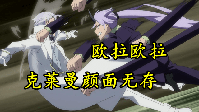 克萊曼召開魔王宴會,態度還那麼囂張,都是因為自以為控制了米莉姆這個「核武器」。大戰將起,紫苑這個急性子二話不說,直接就是一通毆打毆打,打得克萊曼鼻青臉腫,作為魔王的顏面,盪然無存。