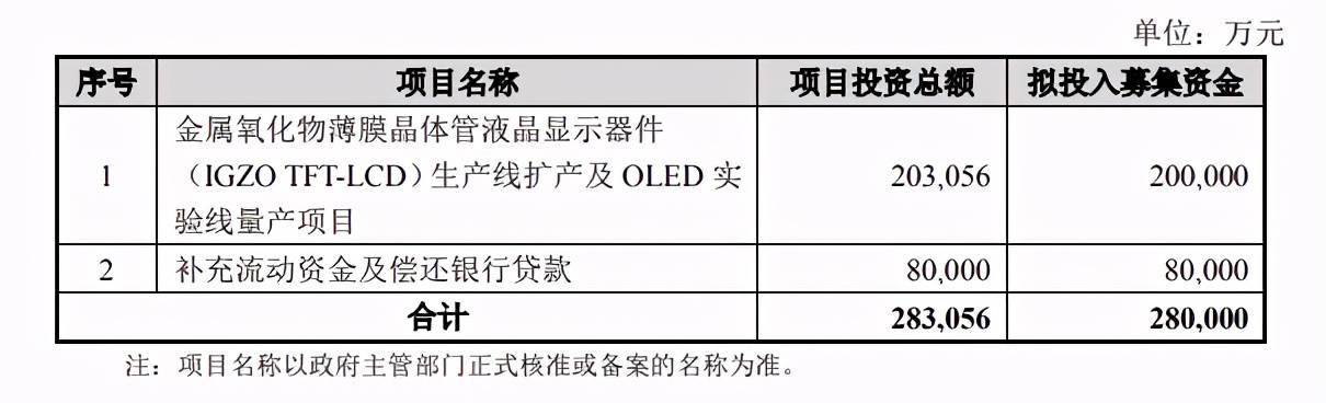 為此,在2021年4月份,華映科技曾拋出一份定增計劃,擬向公司控股股東等非公開發行股票,募集資金總額不超過28億元。根據公告顯示,其中20億元將用於投資金屬氧化物薄膜電晶體液晶顯示器件(IGZOTFT-LCD)生產線擴產及OLED實驗線量產項目,另用8億元補充流動資金及償還銀行貸款。