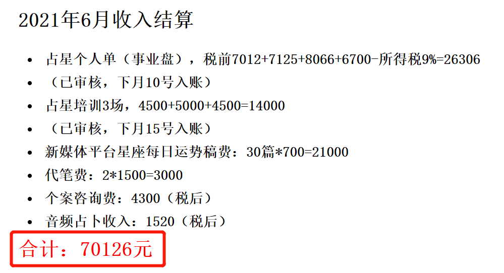 ▲寶媽心潔21年6月靠副業占星賺了7W+