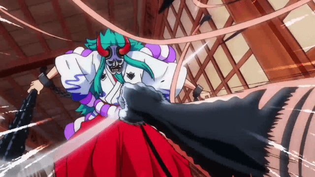 路飛打起架來是毫不含糊,連火拳銃都用出來了。大和實力是很強的,路飛的火拳銃自然沒能奈何她,反而讓她想到了艾斯。四年前,艾斯也來到了歸鬼之島,揚言要取凱多的首級。不愧是兄弟。