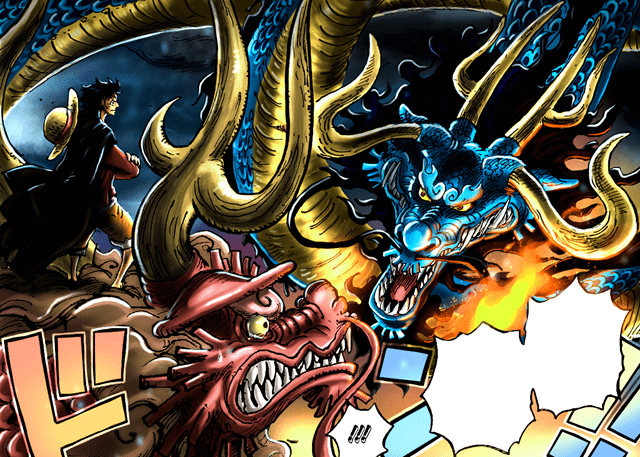 在漫畫第1007話中,CP0提到了貝加龐克提取凱多血統因子,製造了一顆人造惡魔果實。這可惡魔果實被桃之助所吃,變成了現在的巨龍。雖說有著凱多的因子,但能發揮出多大的實力,還是要根據桃之助個人的運用。