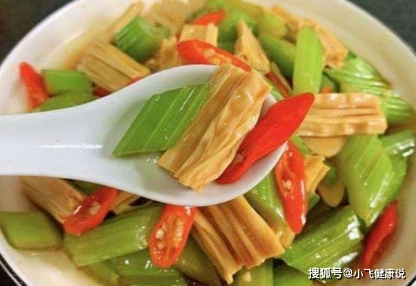 今日共享的菜式是芹菜炒腐竹。芹菜 吃起來脆爽,腐竹的口感不像豆腐那麼軟,但還是很好吃的。常常食用可加速身體內毒素的代謝,避免嚴重便秘。芹菜熱量低,減肥者可以常吃,並且含鐵成分高。女性常吃能夠祛毒、護膚、補氣血,多吃也不容易長胖。