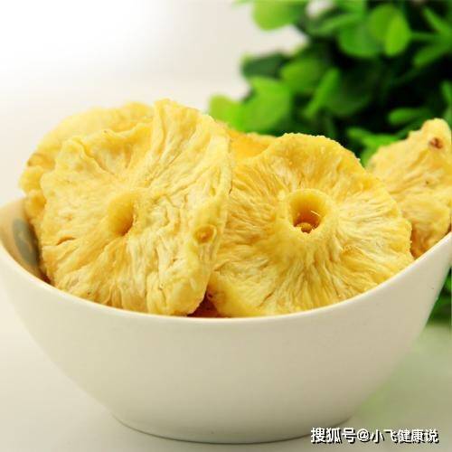 菠蘿干有維生素B,經常吃菠蘿干能夠滋潤皮膚,預防皮膚乾燥,淡化色斑和皺紋,使皮膚細膩光滑有彈性,更顯年輕,淡化皺紋、美白護膚。