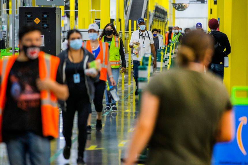 亞馬遜是美國第二大私人僱主,擁有超過95萬名工人,其中大部分是倉庫員工。通過算法跟蹤,亞馬遜倉庫員工急於打包和運送源源不斷的購物訂單,並在數小時內送達。