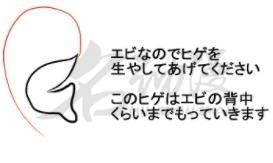 第五步,畫出外輪廓,要有厚度感,可以分為兩筆畫法。第一筆與蝦鬍子隔開一點的位置,沿著蝦鬍子的線條畫出一樣的輪廓,第二筆就是畫耳垂了。如圖下: