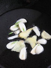 炒鍋放油燒熱,爆香薑片、蒜片。