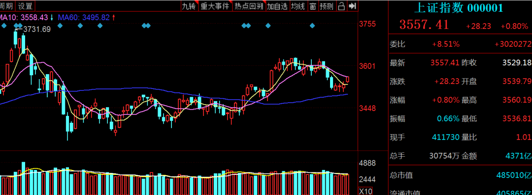 技術面上,滬指在60日均線迎來反彈,盤中觸及3560,也就是10日均線附近。