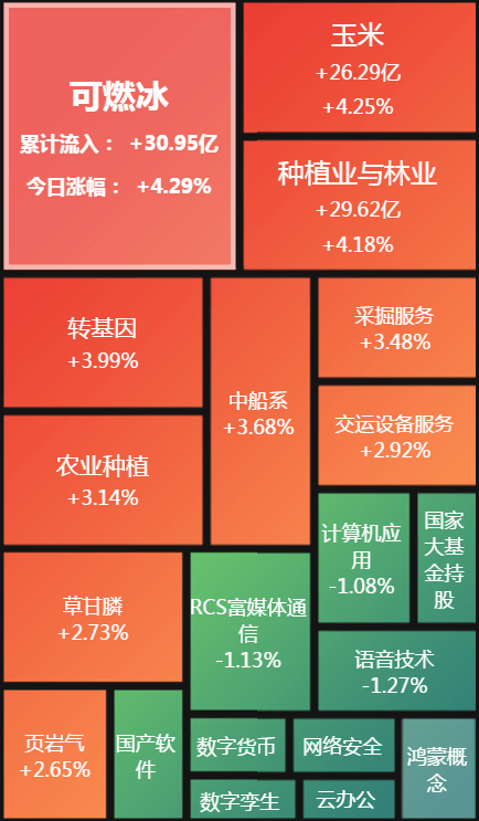 盤面上領漲的主要是油氣、農業、軍工、碳中和、煤炭等板塊,中國石油盤中大漲近7%,再創階段性新高。
